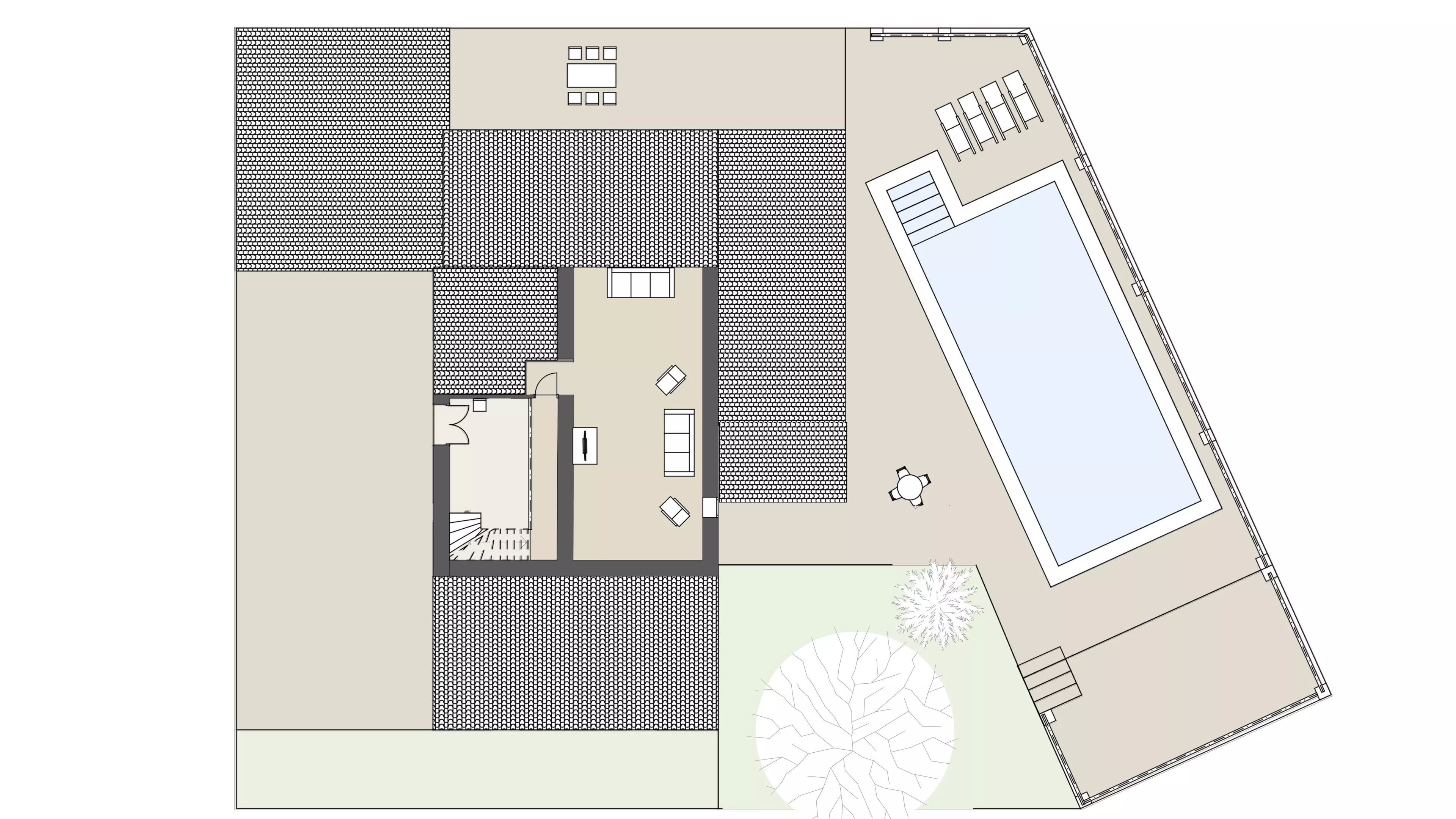 - Barbacoa tradicional y piscina con entrada en pendiente