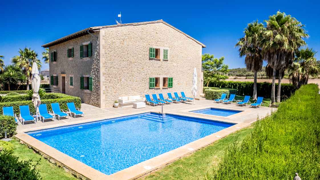 La Finca "Palmeral" ofrece lujo y espacio para unas vacaciones inolvidables. Con 500 m² de espacio habitable, 6 elegantes dormitorios con baños en suite, 2 piscinas y un jardín mediterráneo, es ideal para un máximo de 12 huéspedes. La moderna cocina, las amplias zonas de estar y la proximidad a Petra y a las hermosas playas crean un equilibrio perfecto entre relajación y actividad.